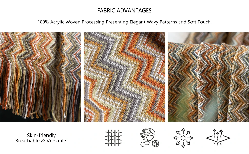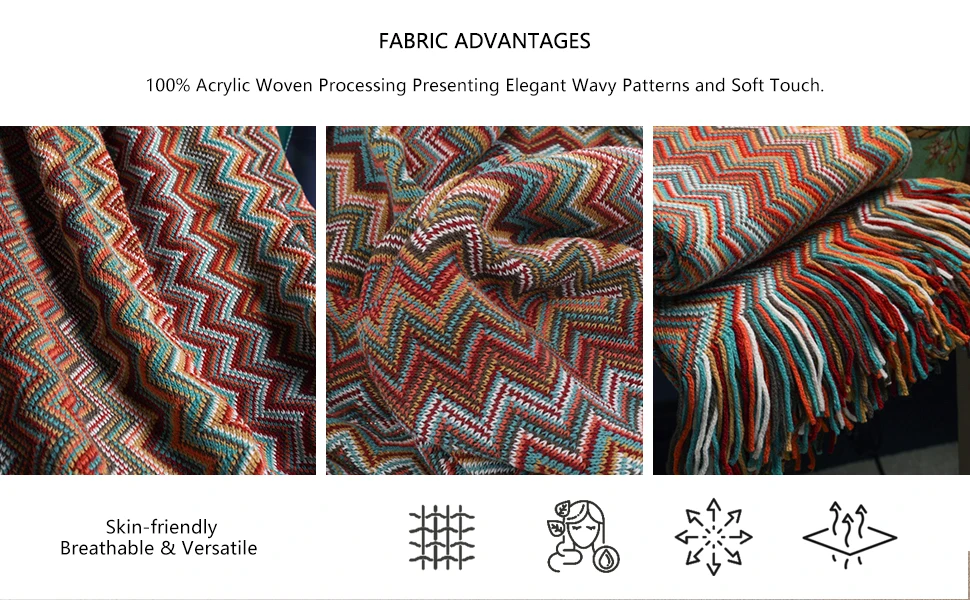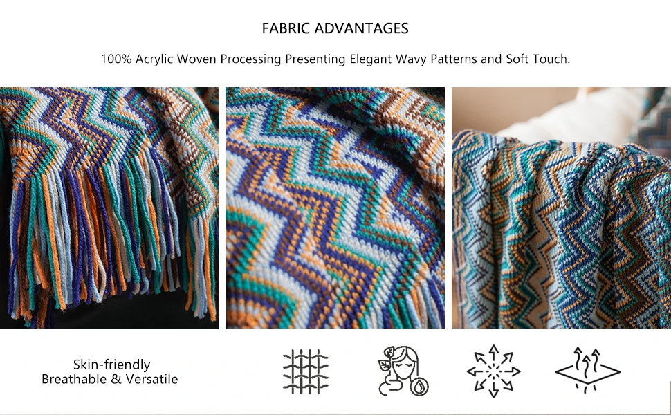 Throw blankets for sofa are colorful and adds vitality to your home in spring. How romantic it is to go to the seaside and walk with the sea breeze in the summer with a boho blanket! It is also your good companion in the air-conditioned room. In the autumn afternoon, take a nap in the back garden with throw. It's leisurely and comfortable! In cold winter, knitted blankets can be used as outdoor scarves or indoor shawls to bring warmth to your winter.
